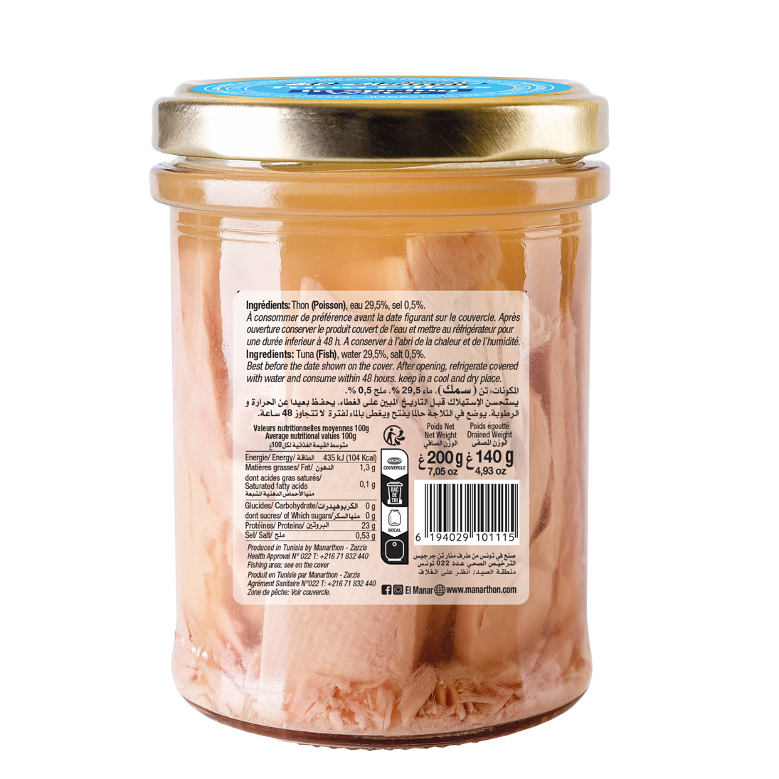 Découvrez les filets de thon El Manar, issus d’une sélection rigoureuse et préparés avec un savoir-faire traditionnel. Délicats et savoureux, ils sont riches en protéines, oméga-3 et nutriments essentiels, pour allier plaisir et équilibre au quotidien.